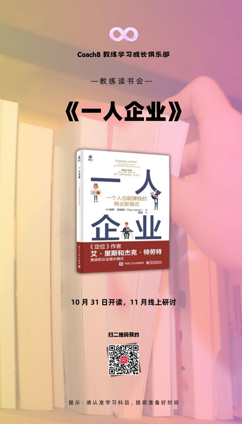「教练读书会」铁林教练带领你读《一人企业》10 月开读