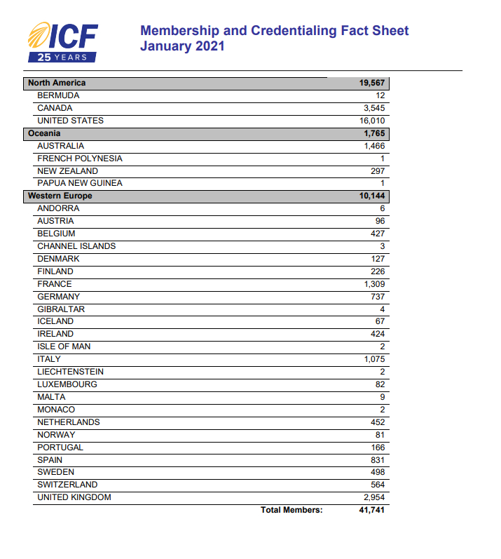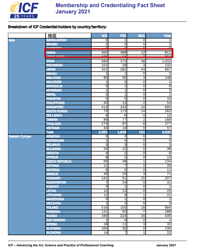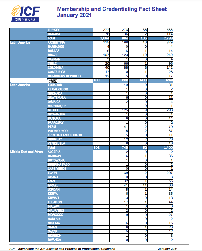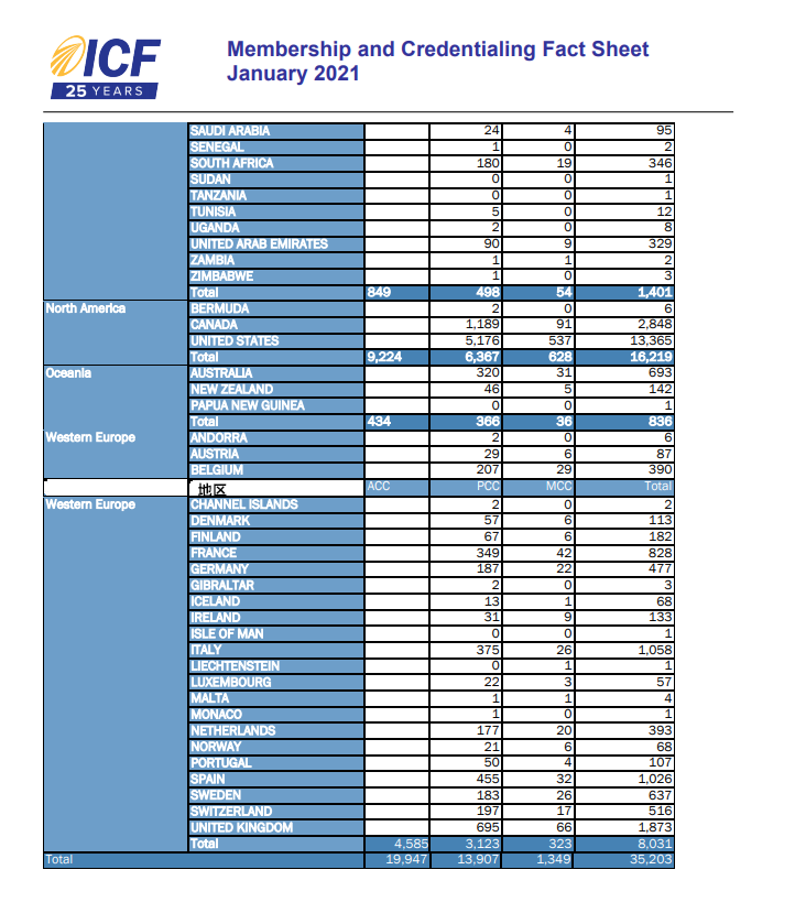 全球有多少国际认证教练?看看ICF全球官方会员报告(2021年1月数据)