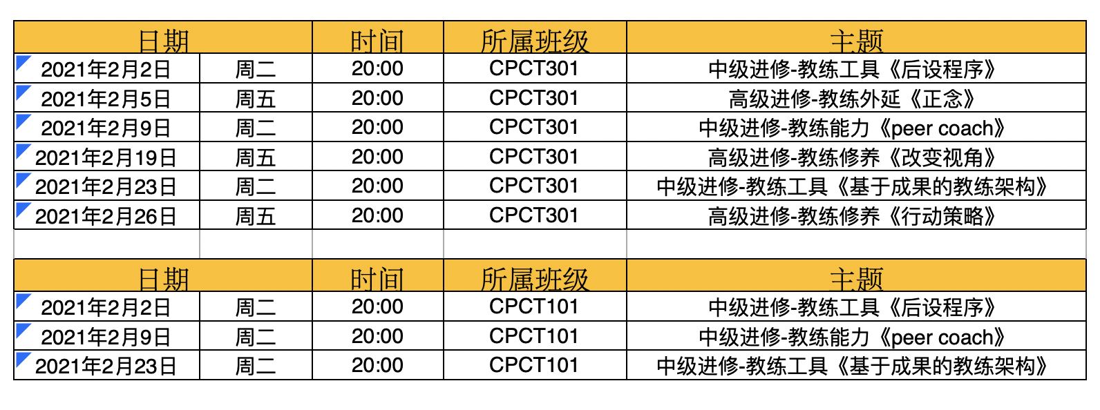 2021年2月主题课程时间安排表