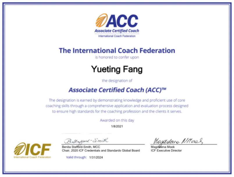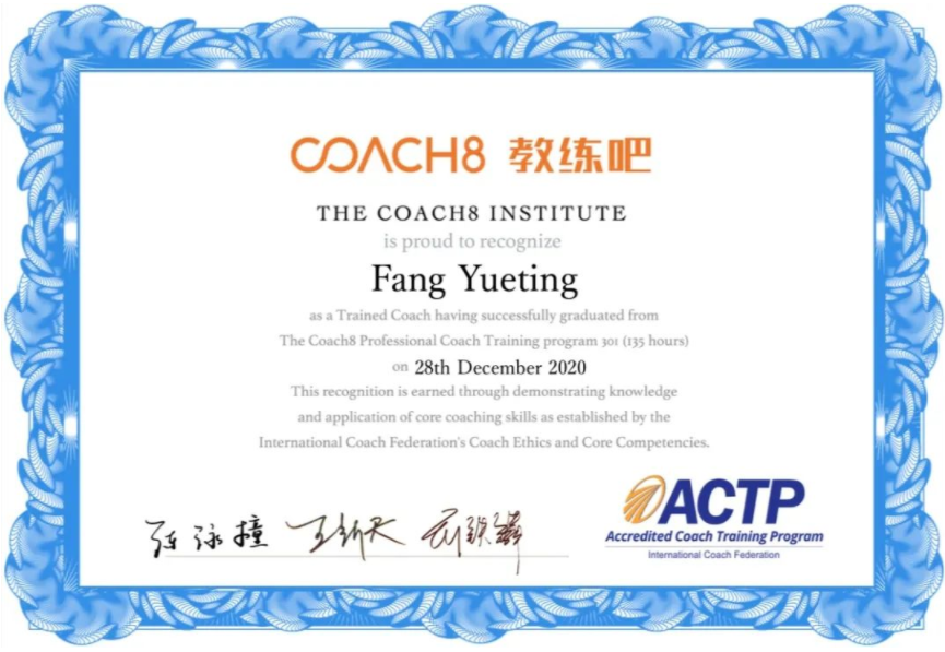 ICF认证ACC教练方月婷:教练为我开启了一个美好新世界!
