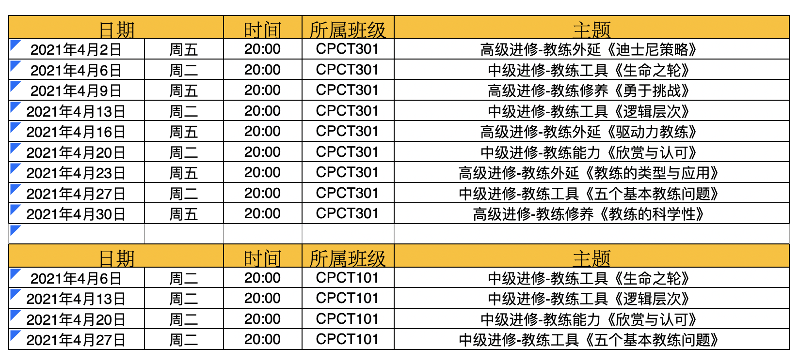 2021年4月主题课程时间安排表