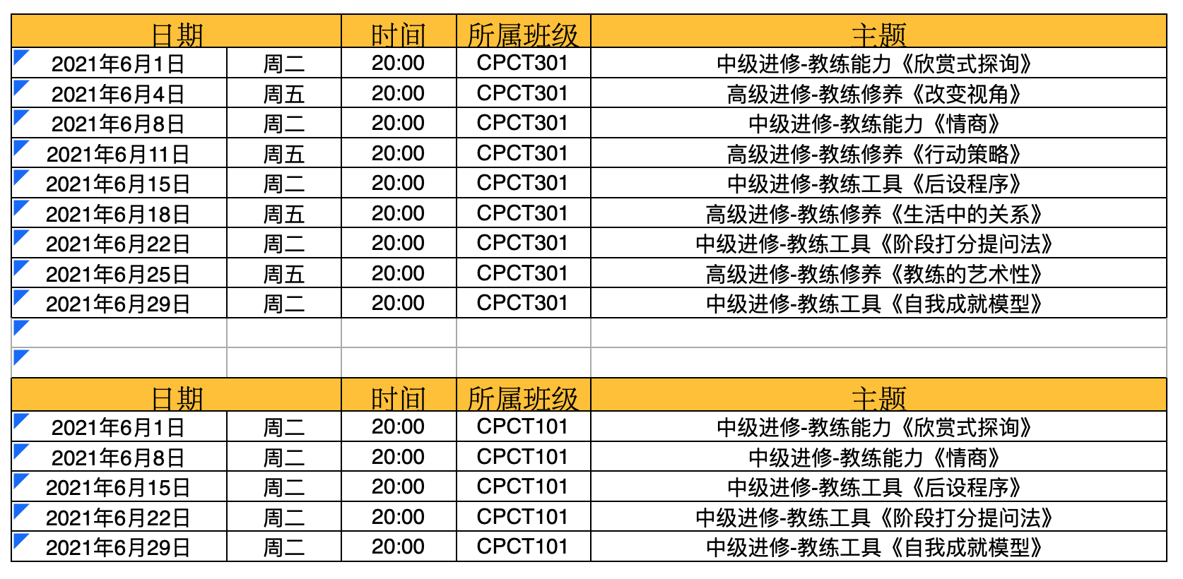 2021年6月主题课程时间安排表