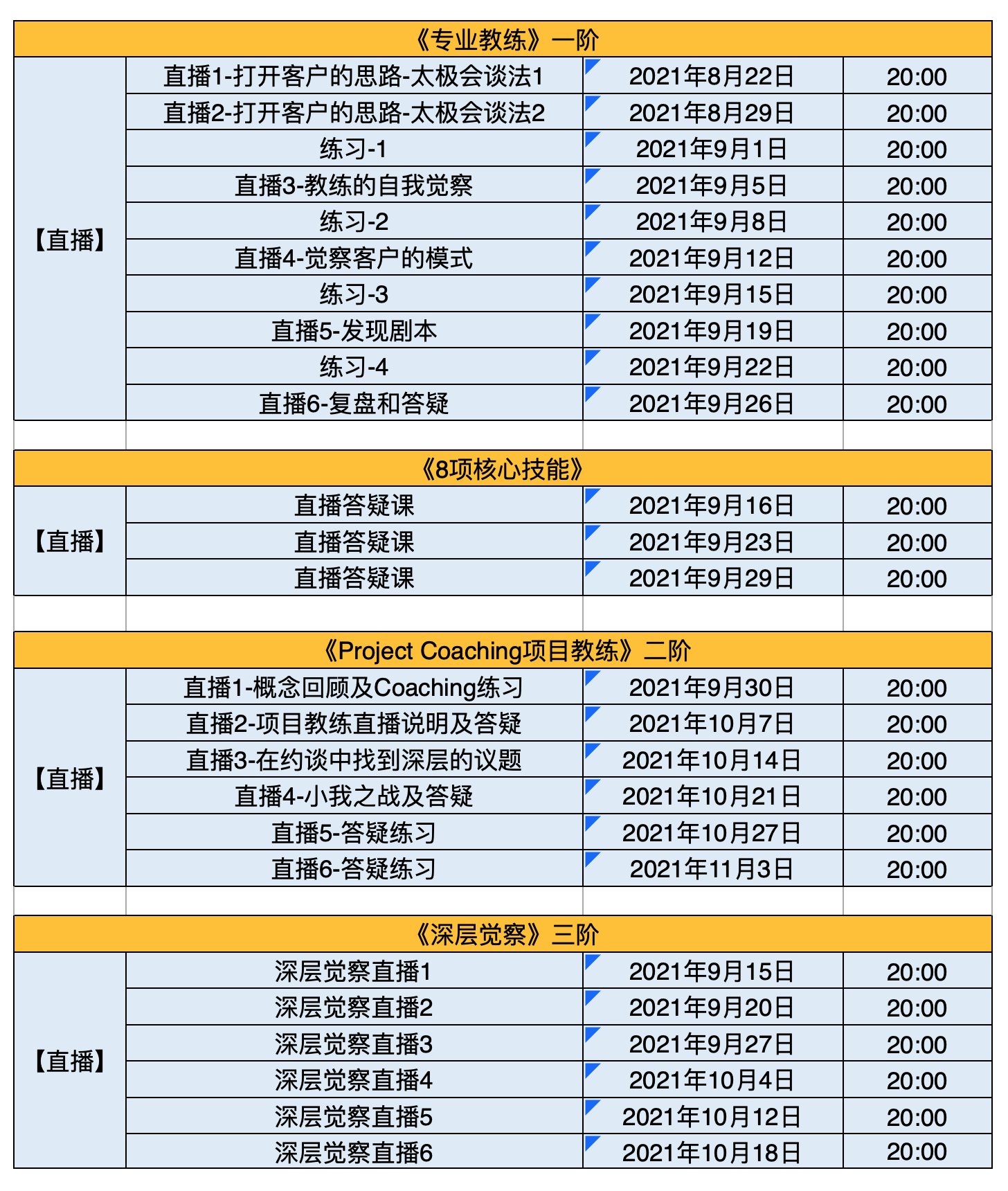 2021年9月系统工作坊时间安排表