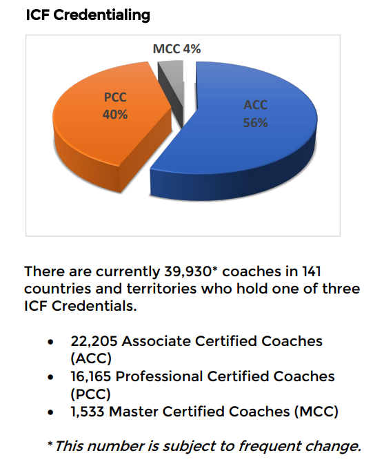 目前在全球141个国家和地区里,有39930名教练持有三类ICF认证教练证书。其中——