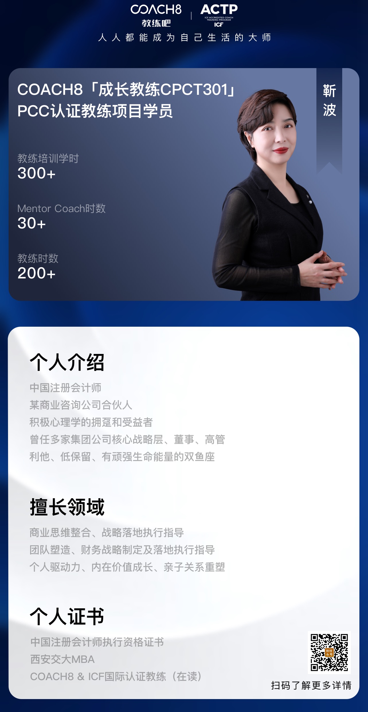 同时,如何能专业地支持到客户,实现他自己的目标,教练也需要有遵守专业道德的能力。