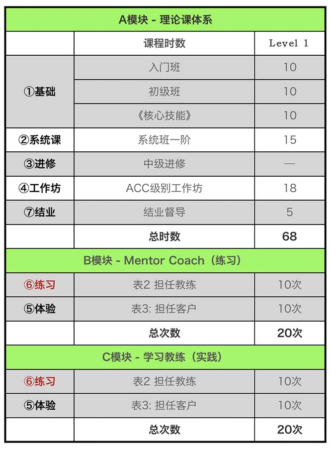 录播课+直播课+观察下的教练(Supervising Coach) = 68小时,
