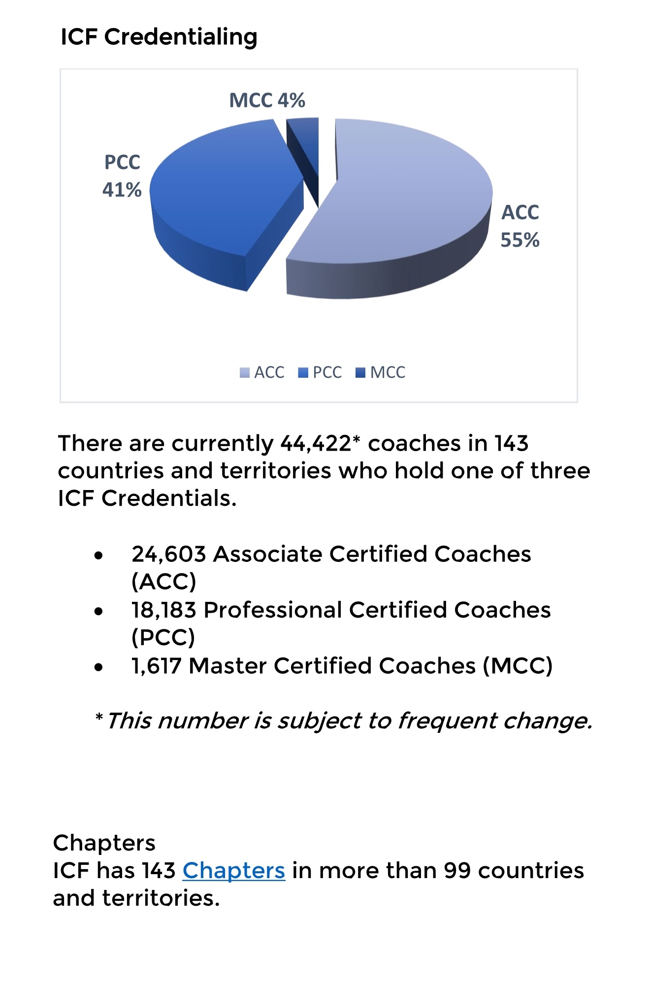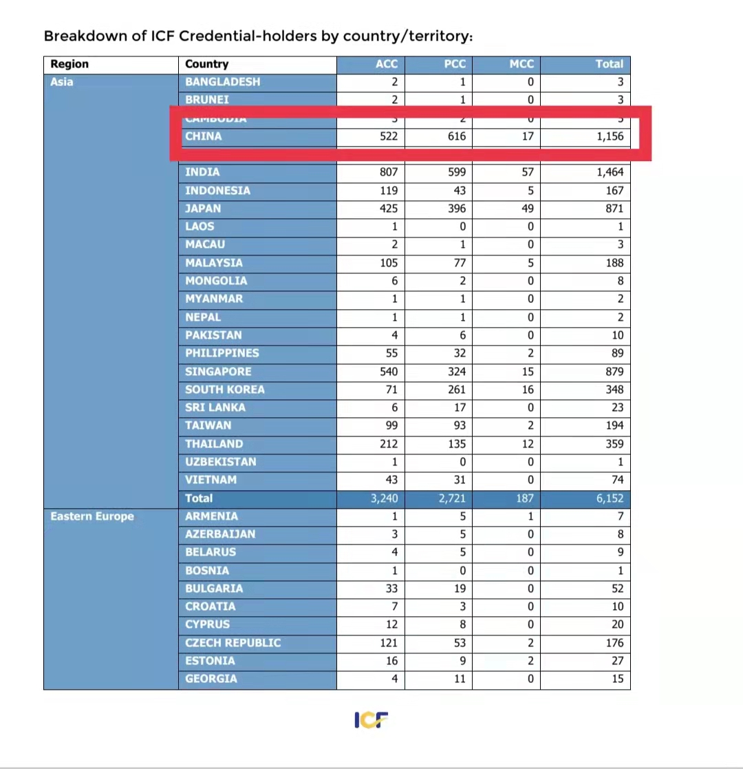 ICF将“教练”定义为与客户在发人深省和富有创造性的过程中进行合作,激发他们最大限度地发挥个人和专业潜力。 (以下数据都是截止到发稿日的统计,数量会随着日期的变化而发生变化。)