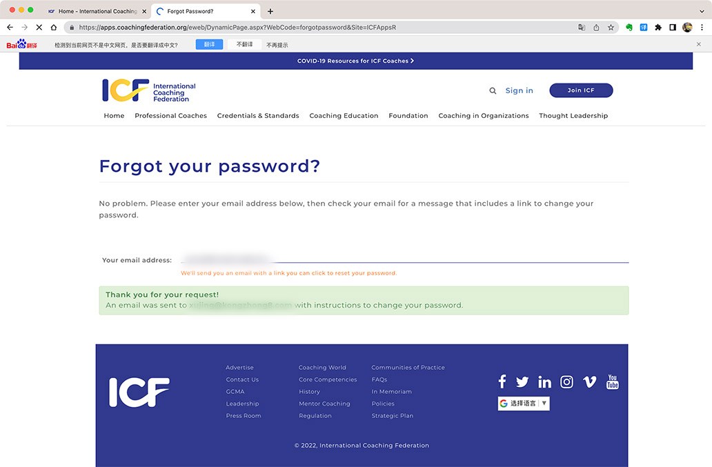 自2020年开始,ICF(国际教练联盟)开始对网站进行逐步的改版。特别是2019年到2022年ICF对《核心技能》(也称作ICF核心能力)和《道德准则》进行了更新,并且也推出了ICF《团队教练核技能》,并且对ICF组织进行了大规模的改革后,ICF的网站的各种注册、申请功能都发生了很大的变化。Coach8根据这种变化,给大家整理一系列的如何注册会员、如何重新申请会员找回密码、如何申请ACC、PCC和MCC和如何Renew(更新)ACC、PCC、MCC的手把手教程,按照这个教程的步骤,几乎可以很快的完成想要做的工作。