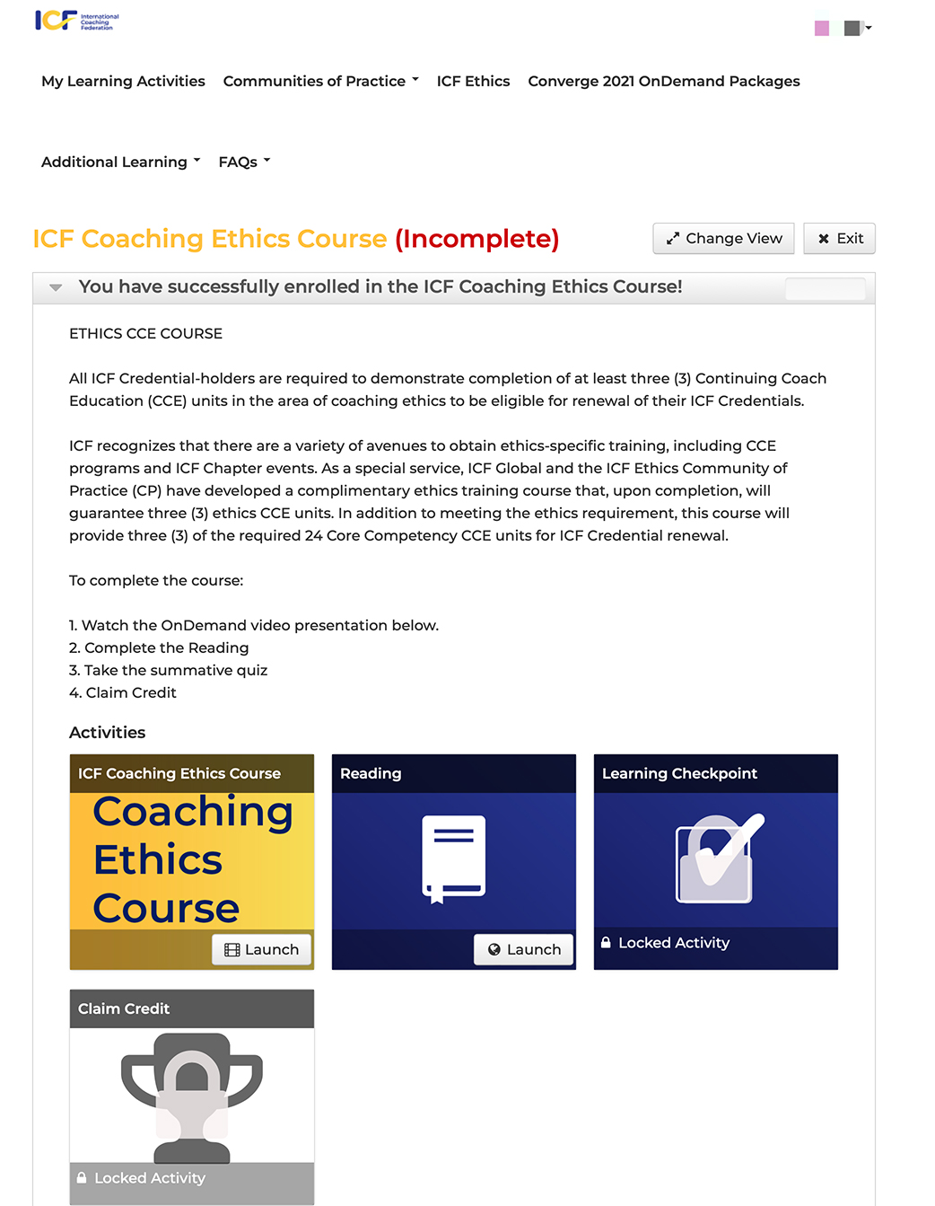 如何获得ICF在道德伦理的免费3小时CCE学时,如何考过?