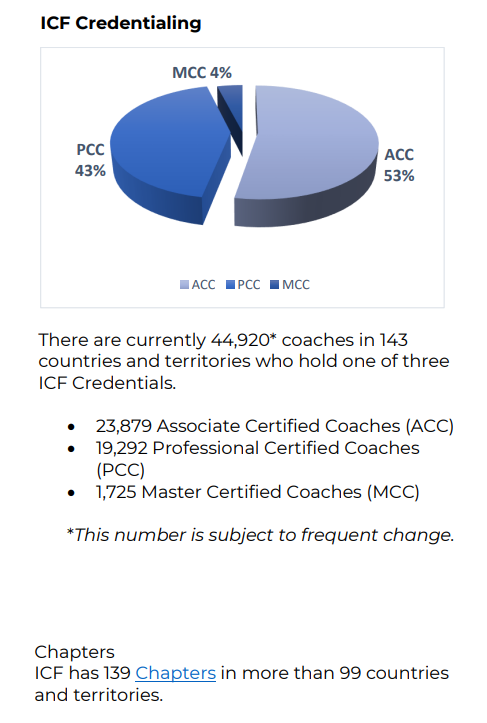 ICF将“教练”定义为与客户在发人深省和富有创造性的过程中进行合作,激发他们最大限度地发挥个人和专业潜力。 (以下数据都是截止到发稿日的统计,数量会随着日期的变化而发生变化。)
