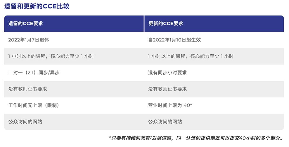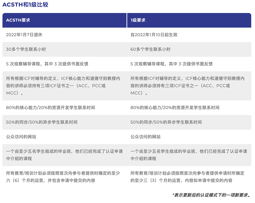在下面,您将找到一目了然的图表,这些图表将遗留的ACSTH、ACTP和CCE认证与2022年1月10日生效的最新级别1、2和CCE认证进行比较。