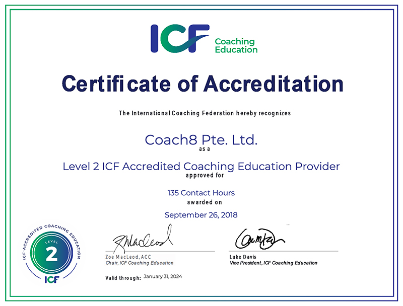 好消息,Coach8经过ICF几个月的密集评审后终于获得了ICF Education所授权的Level 2的认证培训资格。据消息称,Coach8是中国地区第一批获得Level 2资格的公司之一。