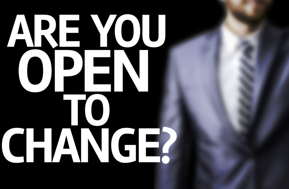 你愿意改变吗?写在板子上,背景是商人