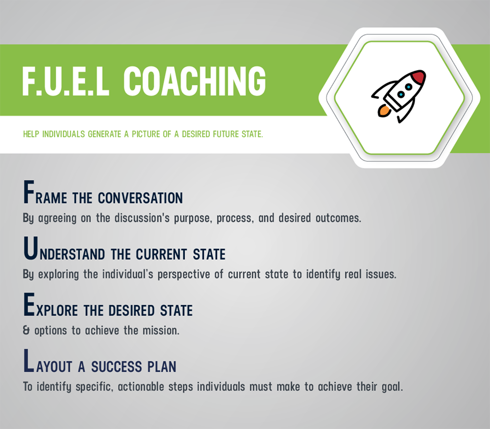 在下一阶段,受训者的事实和感受应该变得更加清晰。这让教练可以开始提出探询式问题和具体问题,以帮助员工了解他们与当前状态的情感联系,以及他们认为可能需要改变什么才能达到另一个理想的状态。