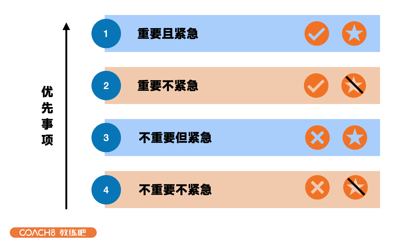紧急但不重要的任务会阻碍您实现目标。问问自己是否可以重新安排或委托他们。