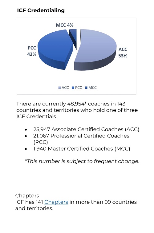 ICF将“教练”定义为与客户在发人深省和富有创造性的过程中进行合作,激发他们最大限度地发挥个人和专业潜力。 (以下数据都是截止到发稿日的统计,数量会随着日期的变化而发生变化。)