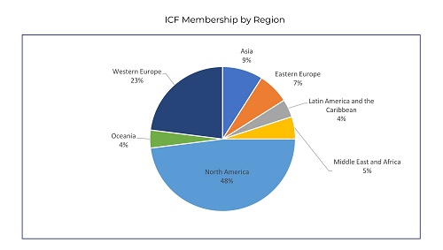 ICF在167个国家和地区拥有55289个会员,在99多个国家拥有超过141个分(ICF分会是用来发展ICF成员及线下活动的公益性组织)。