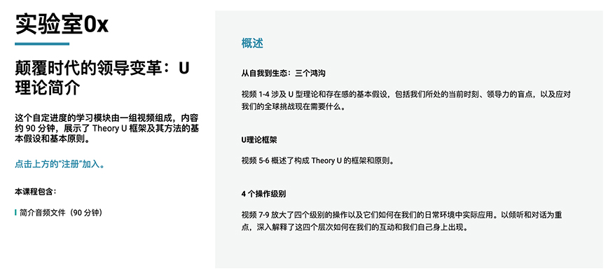 免费学习《u-lab 0x | 颠覆时代的主导变革:u理论简介》课程