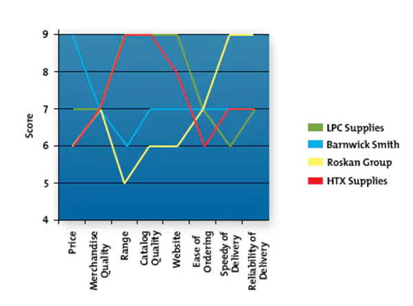在图表上绘制这些点。这有助于您发现不同竞争对手的优势和劣势。