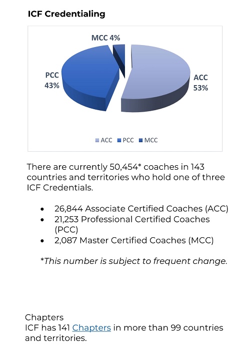 ICF将“教练”定义为与客户在发人深省和富有创造性的过程中进行合作,激发他们最大限度地发挥个人和专业潜力。 (以下数据都是截止到发稿日的统计,数量会随着日期的变化而发生变化。)