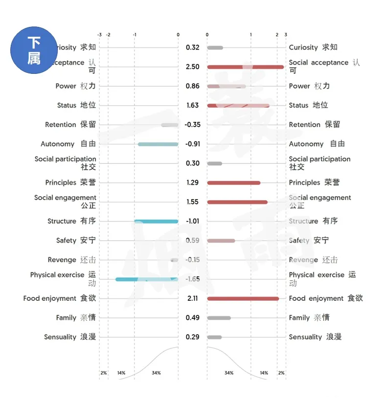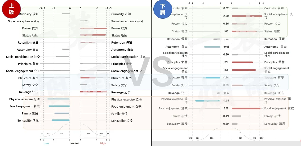 不难看出上级的【权力】、【地位】、【还击】都是高红,那她对于事情的掌控欲是非常强烈的,且对于工作的结果产出要求很高。
