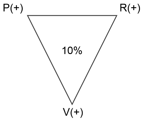 共情三角形的三个角色还是“迫害者(P)”、“拯救者(R)”、“受害者(V)”,但是每个角色都有10%的积极意图。