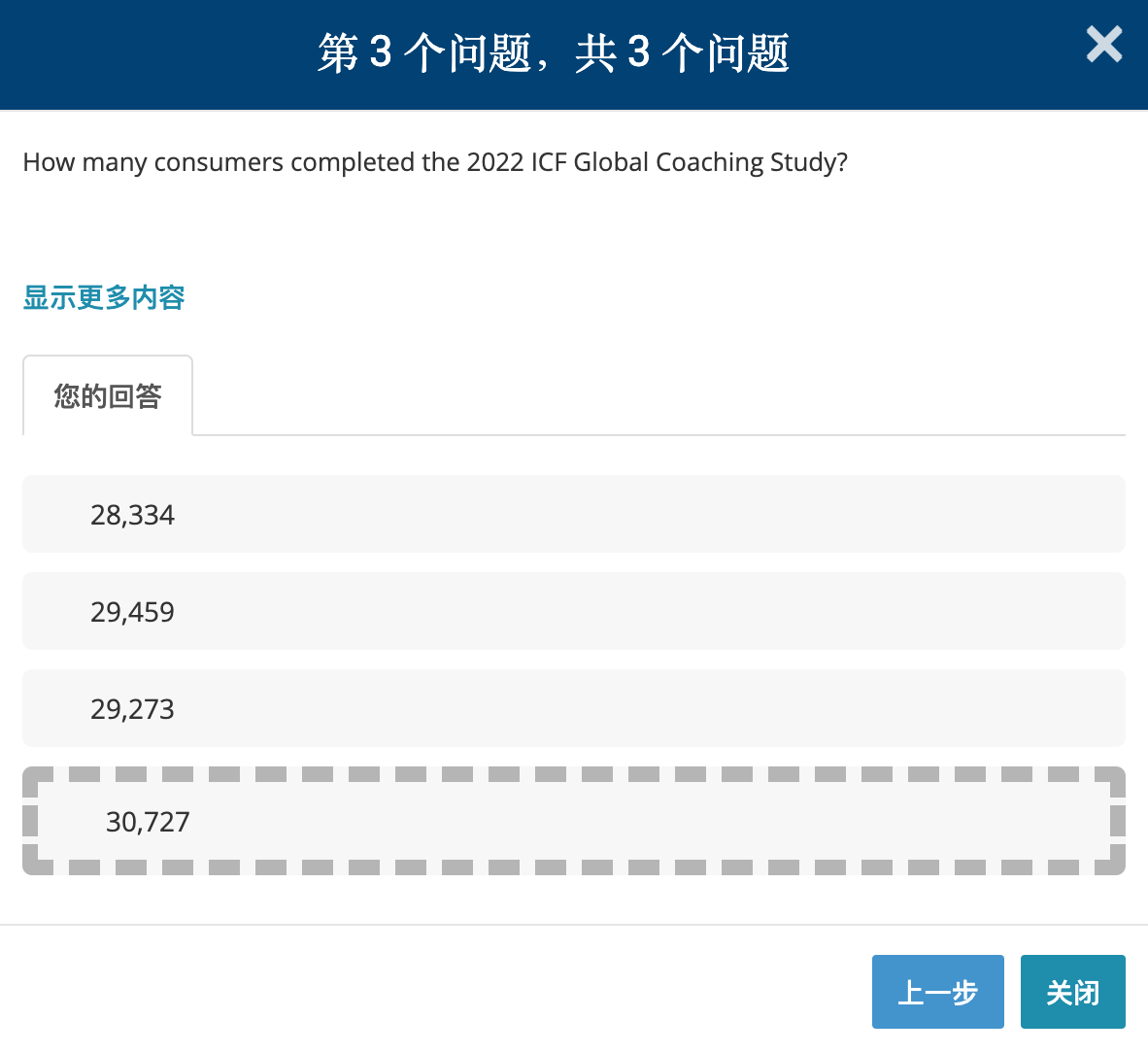 随着全球对专业教练的认识不断提高,2022 ICF 全球消费者意识研究——ICF 迄今为止最新和规模最大的消费者研究——提供了对消费者认知和动机的洞察。详细了解这项由 ICF 委托并由普华永道 (PwC) 进行的研究。这项研究的结果包含来自 30 个国家/地区的 30,727 份回复。