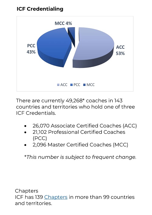 ICF将“教练”定义为与客户在发人深省和富有创造性的过程中进行合作,激发他们最大限度地发挥个人和专业潜力。 (以下数据都是截止到发稿日的统计,数量会随着日期的变化而发生变化。)