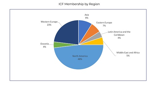 ICF在170个国家和地区拥有62527个会员,在99个国家拥有超过139个分会(ICF分会是用来发展ICF成员及线下活动的公益性组织)。