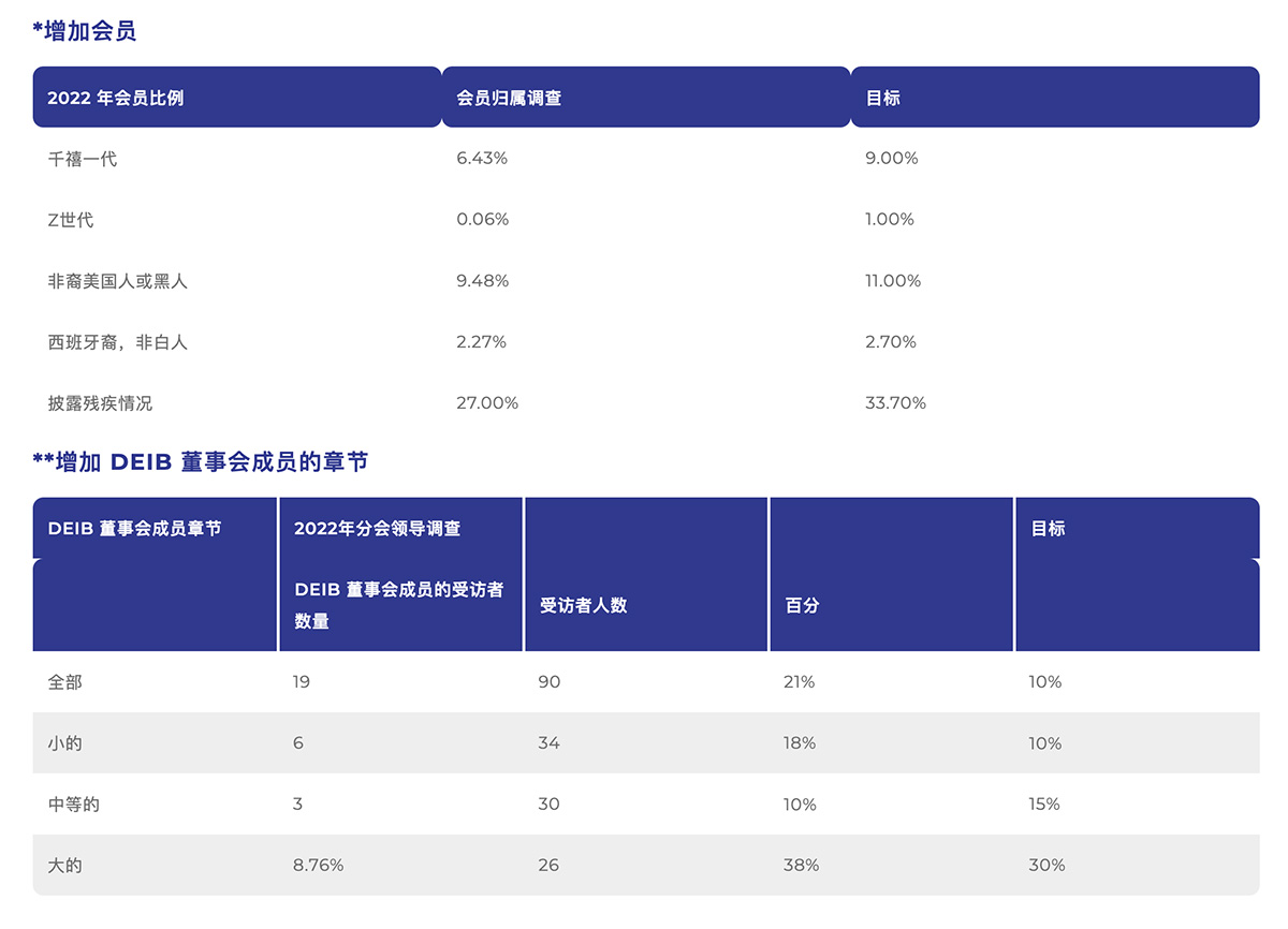 ◎ 我增加了 DEIB 董事会成员的分会数量。(**请参阅下表了解说明。)