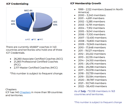 ICF将“教练”定义为与客户在发人深省和富有创造性的过程中进行合作,激发他们最大限度地发挥个人和专业潜力。 (以下数据都是截止到发稿日的统计,数量会随着日期的变化而发生变化。)