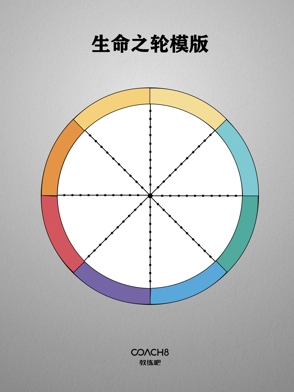 生命之轮(Wheel of life,or Life Wheel 中文又称平衡轮),这一概念最初由 Success Motivation® Institute, Inc. 的创始人 Paul J. Meyer 提出,生命之轮使人能够根据此刻的价值观、愿景和优先事项,规划ta将为ta生活的每个领域付出的时间量。