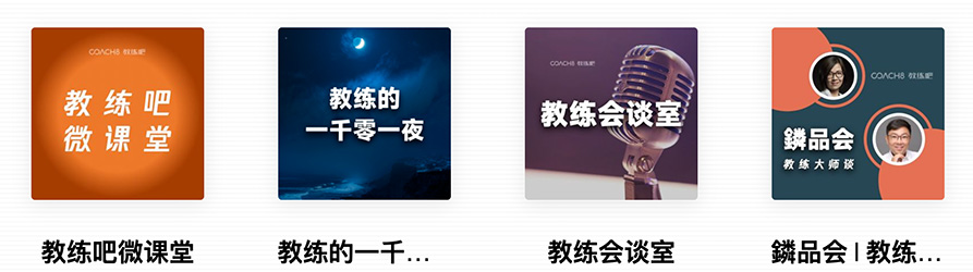 原《Coach8学院会谈室》更名为《教练会谈室》,《Coach8微课堂》更名为《教练吧微课堂》,《鏻品会 | 多教练看世界》更名为《鏻品会 | 教练大师谈》。再加上之前的《教练的一千零一夜》节目,Coach8内容将更加聚焦教练话题,突出教练特色。相信今后的时间播客内容会给大家更多的视角帮助大家成长。