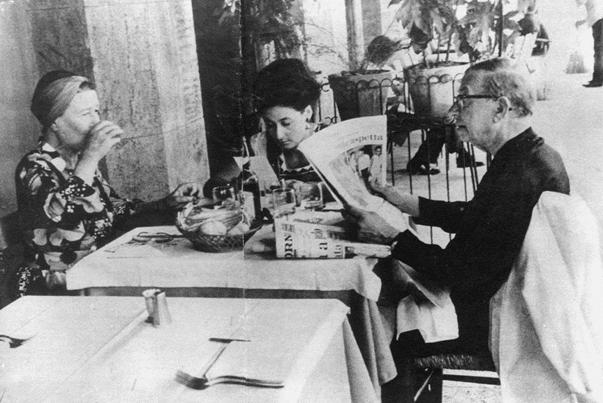 1970年8月,波伏瓦和西尔维•勒•邦还有萨特在罗马的纳沃纳广场