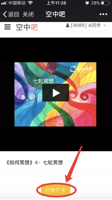2、当你点击完“已学打卡”之后,这 课的状态会变成灯状态