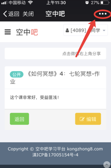 6、点击上图的“预览/分享”按钮,进入以下页面 ,分享作业请点 击右上 “...”图标