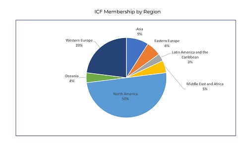 ICF在165个国家和地区拥有58279个会员,在99个国家和地区拥有超过142个分会。