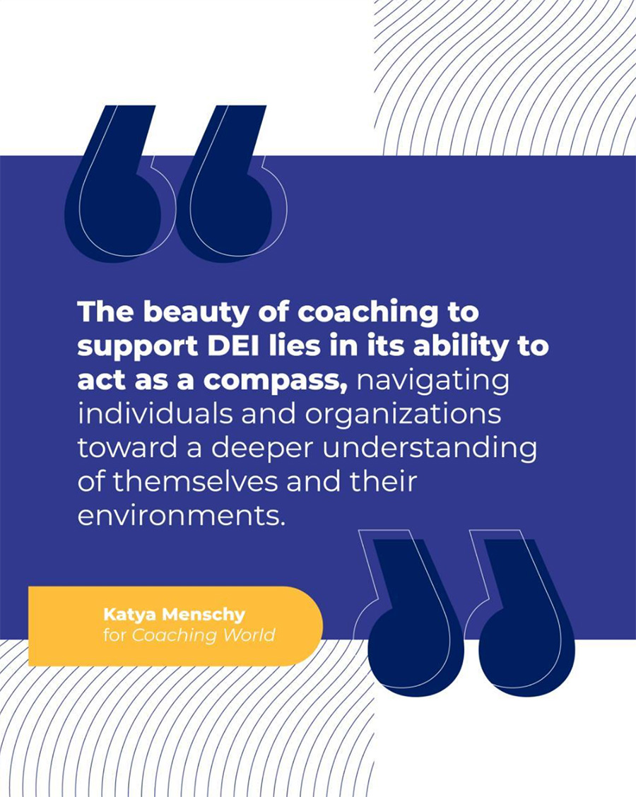 "教练打造个人感觉被看到、重视和理解的环境,为创造力、好奇心、创新和在包容性的文化框架内合作铺平道路。 " - Katya Menschy