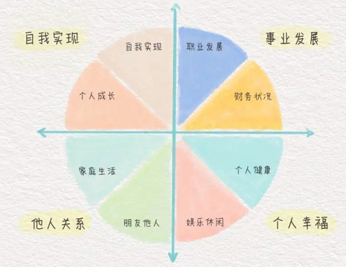 - 社交/人际关系:这个维度关注个人与他人的交往和社交关系。例如,一个人可能通过拓展社交圈、改善人际交往技巧等来实现该维度的平衡。