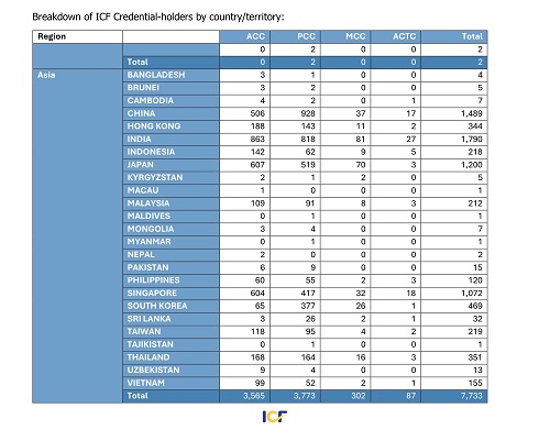 2024年4月ICF官方报告:全球有多少国际认证教练