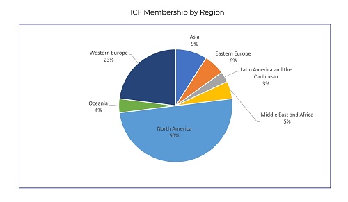 ICF在166个国家和地区拥有61274个会员,在99个国家和地区拥有超过143个分会。