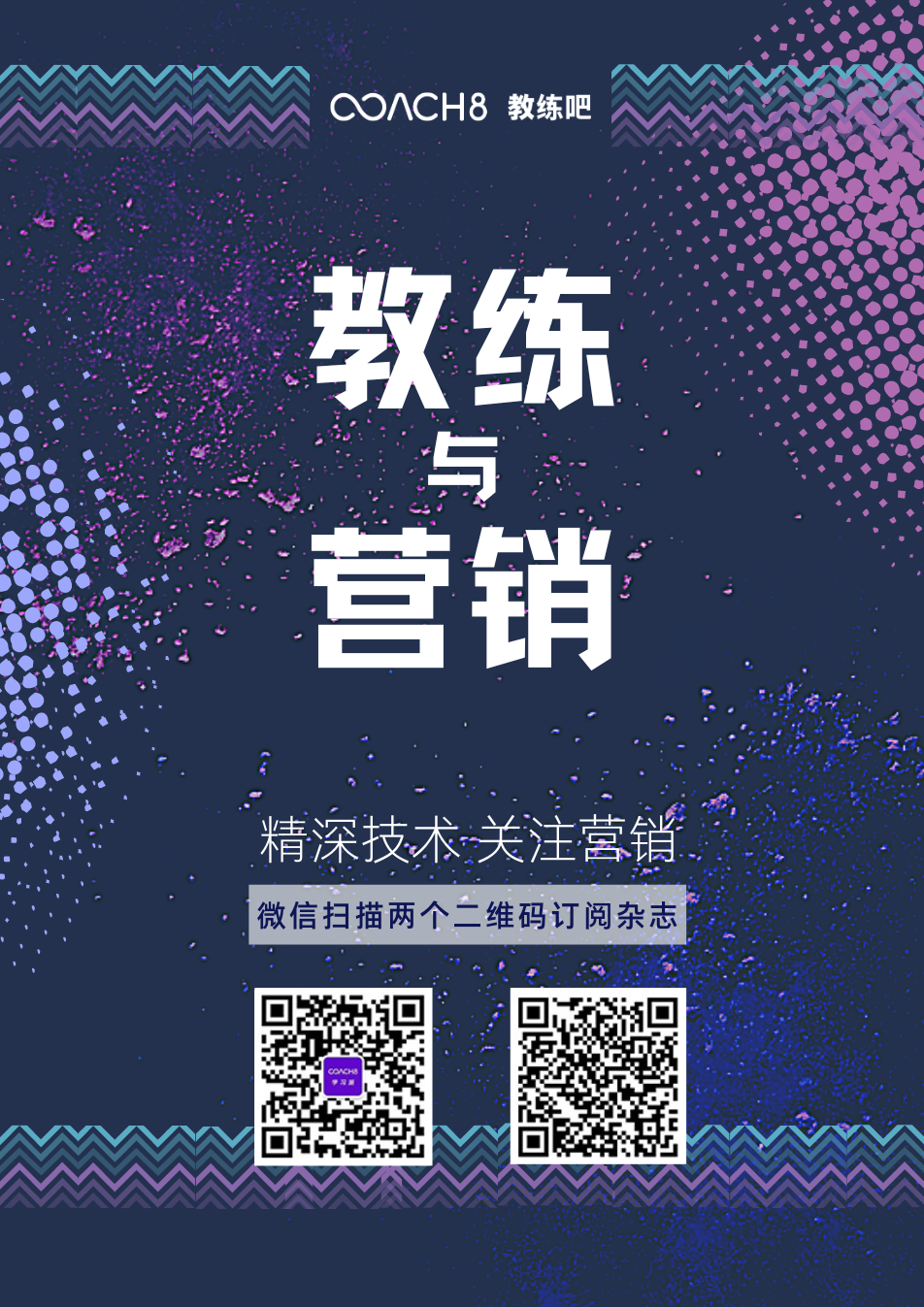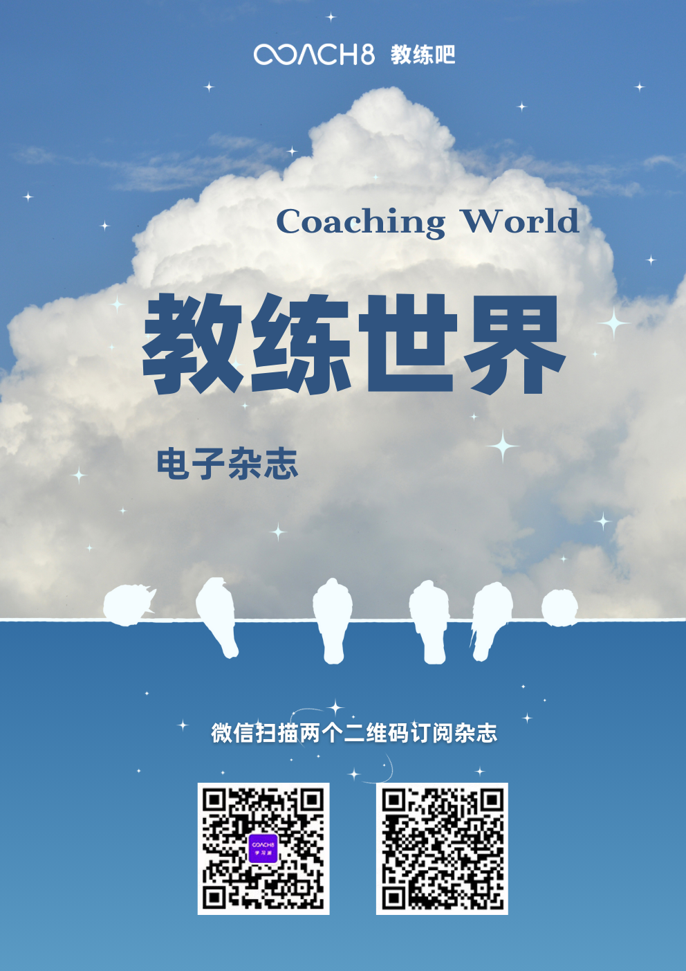 大家好!一直以来大家对coach8的印象是一家教练公司,这与我们自己的理解有所不同。在我们的内部,我们始终认为我们是一群喜欢用先进技术改变行业现状的人。在我们的基因里,我们信奉用互联网的力量让更多人收益这个理念。今天我们开创了一个新的模式,即通过<学习派>这个公众号,订阅<教练与营销>、<教练世界>栏目,我们可以源源不断的透过期刊的形式,将我们认为精华的内容呈现给广大用户。想到这里,我们就觉得很兴奋,因为我们正在用我们相信的理念和更多人连接。关注我们(关注下面海报,用微信扫描两次二维码),就可以持续获得大量学习的内容和其他教练成功的经验。希望大家多和我们互动,谢谢!