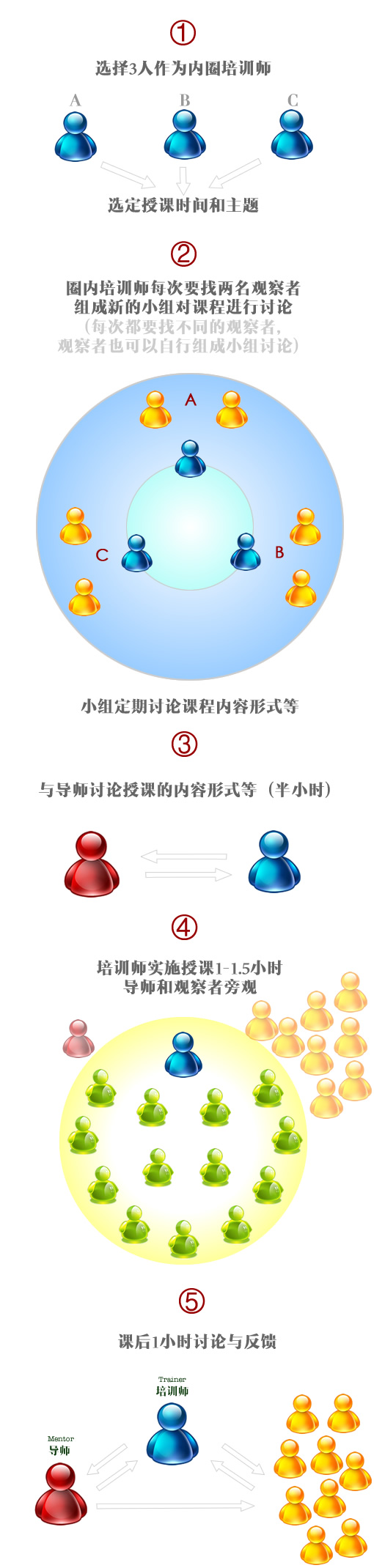 导师、实践者、观察者和上课的学员。