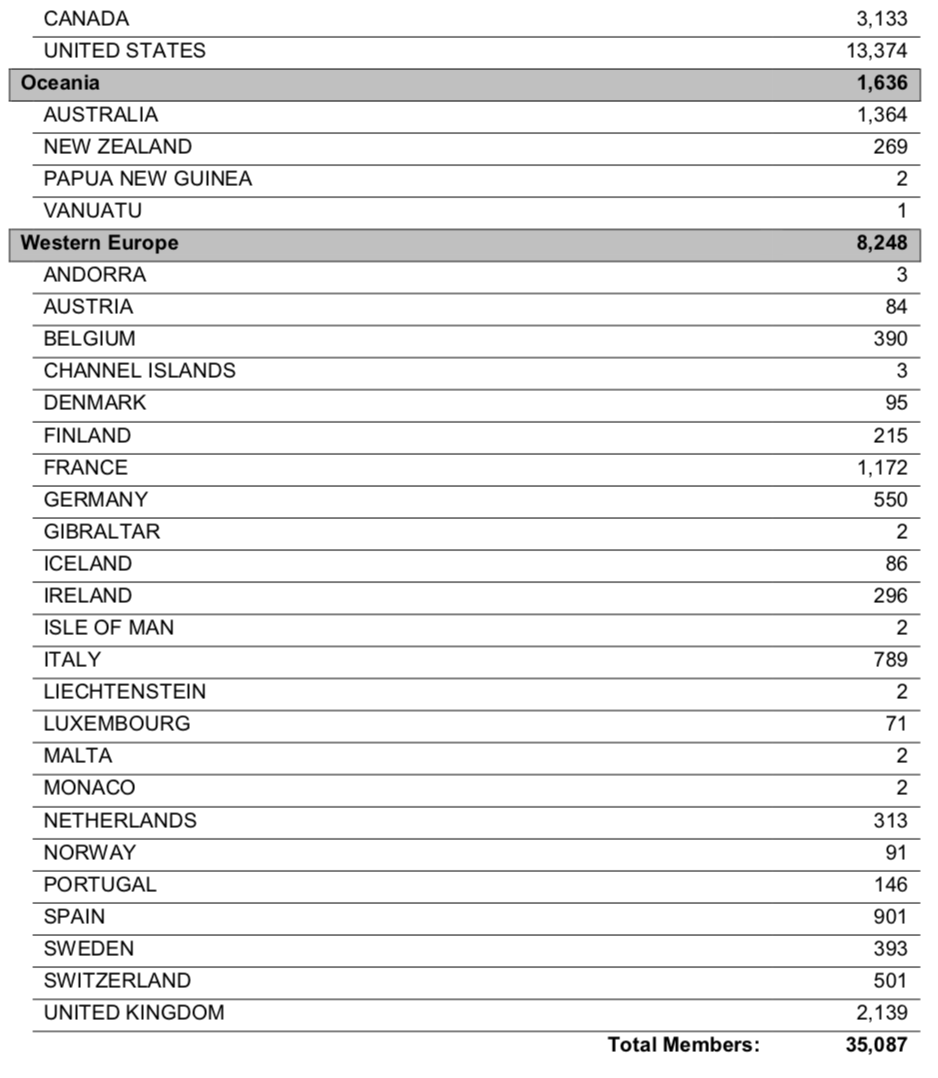 •2005 - 9041会员 •2019 - 35807会员(此数字还在增长) 来自145个国家地区