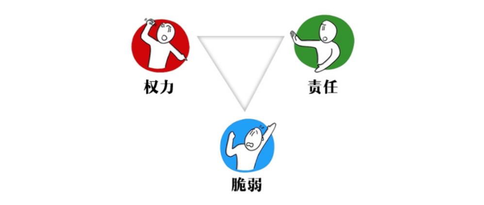 美国心理学博士-卡尔普曼基于伯恩的心理学模型,提出了著名的三角关系——戏剧三角形,这个三角形关系描绘两个或更多人之间的相互作用和行为“动作”,给予和接受之间、责任与权力之间的联系。