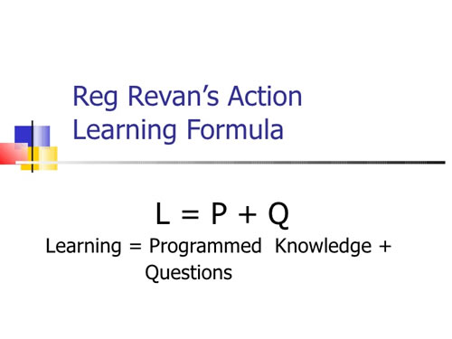 Revans教授曾经用了一个公式来说明行动学习:L=P+Q。L就是学习,P是结构化的知识,而Q怎代表有见解的问题。在Revans教授看来,Q是行动学习的重中之重。后面的一些专家学者不断对这个公式进行了扩张,加上了"R"和“I”,R代表反思,I代表执行。