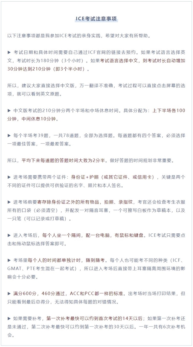 写在最后:有人可能会问,怎样才能有资格报考ICF认证考试(ICE)呢?请参考我前面的公众号文章《通过PCC教练口试录音有多难?》。