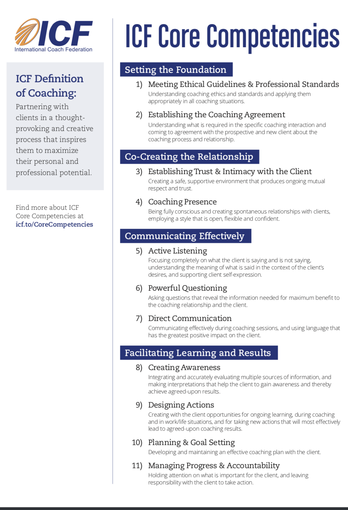 ICF专业教练11项《核心能力》,根据ICF网站所公布的 ICF Core Competencies 英文版翻译,原文地址点这里