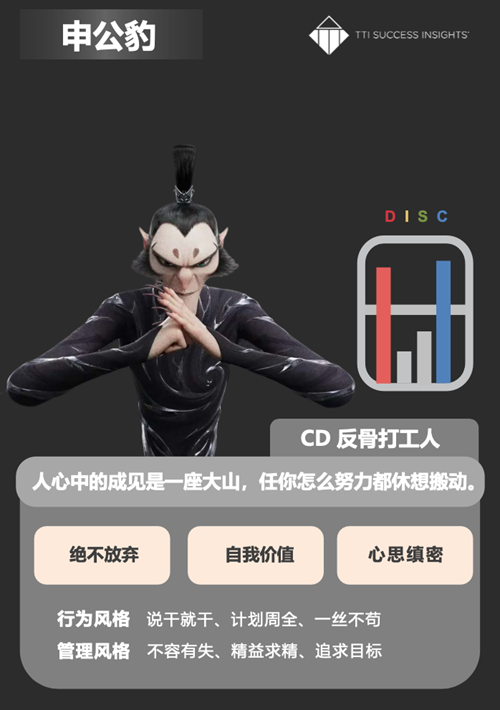 Dennis形容申公豹是“冷静的执行者”。他说:“CD型性格的人往往给人一种‘不近人情’的感觉,因为他们更关注任务和目标,而不太擅长处理情感问题。但他们的逻辑性和执行力很强,是团队中的‘定盘星’。”
