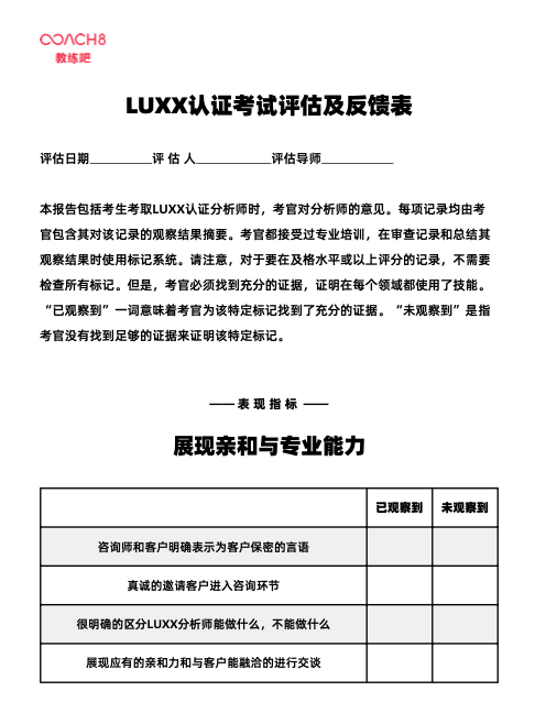 《LUXX认证考试评估及反馈表》PDF 文件下载
